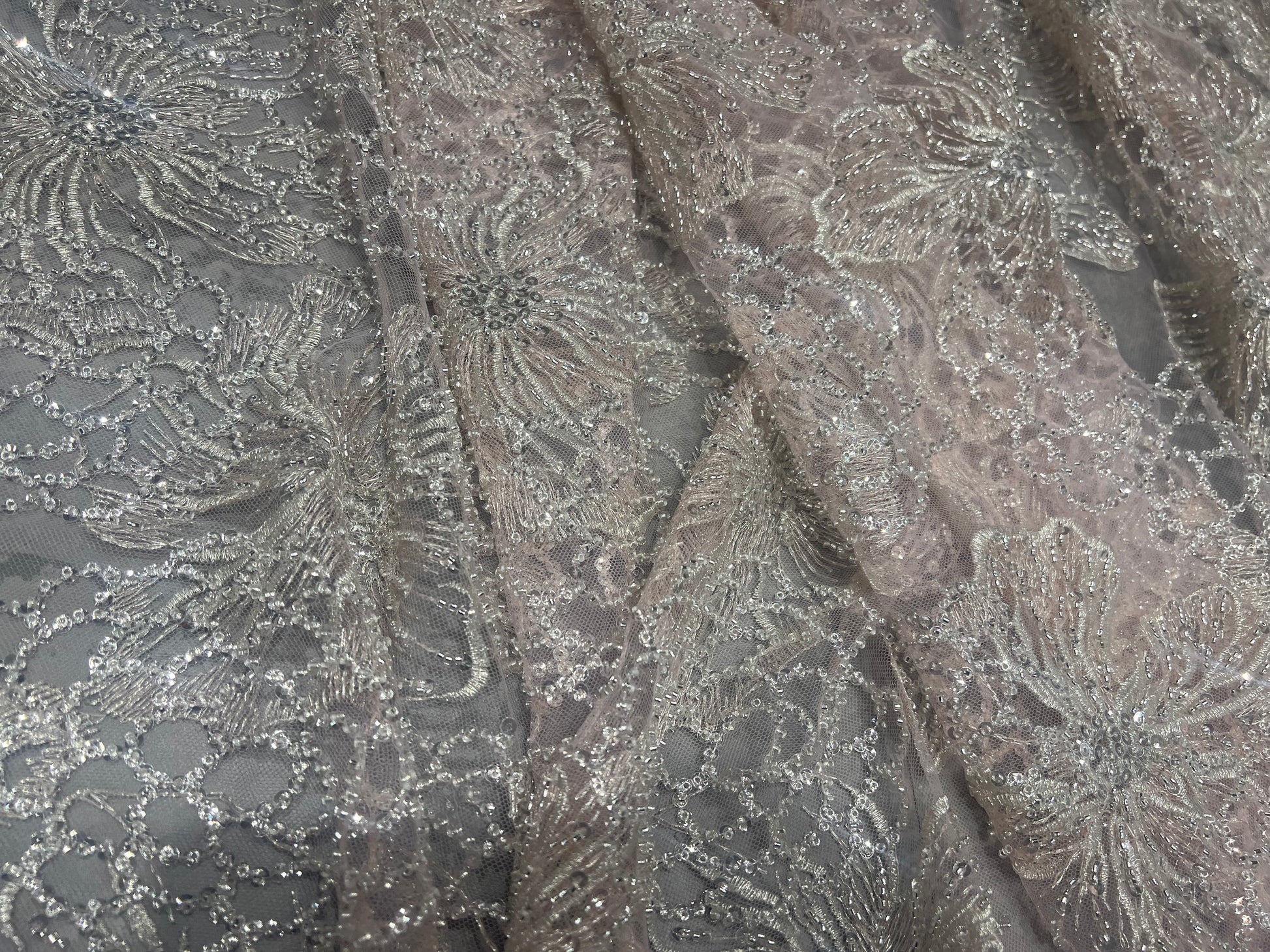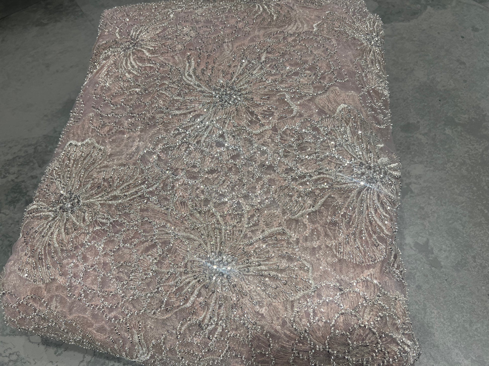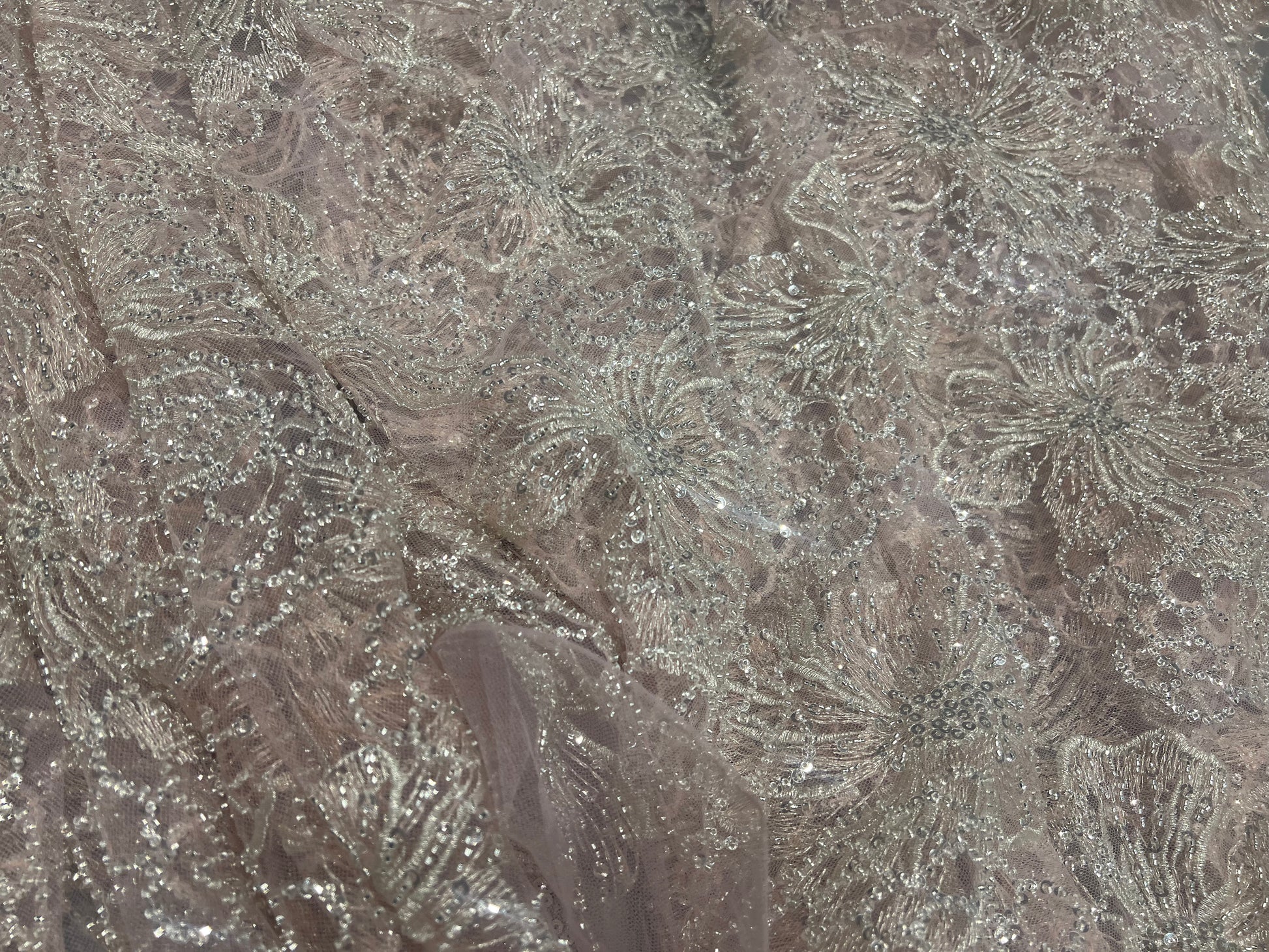 Powder Peach Cut dana & Sequin Net ₹2850/per meter